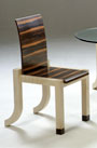 A dining table and chairs made for our man in Valencia. They are made from english ripple sycamore and macassar ebony.